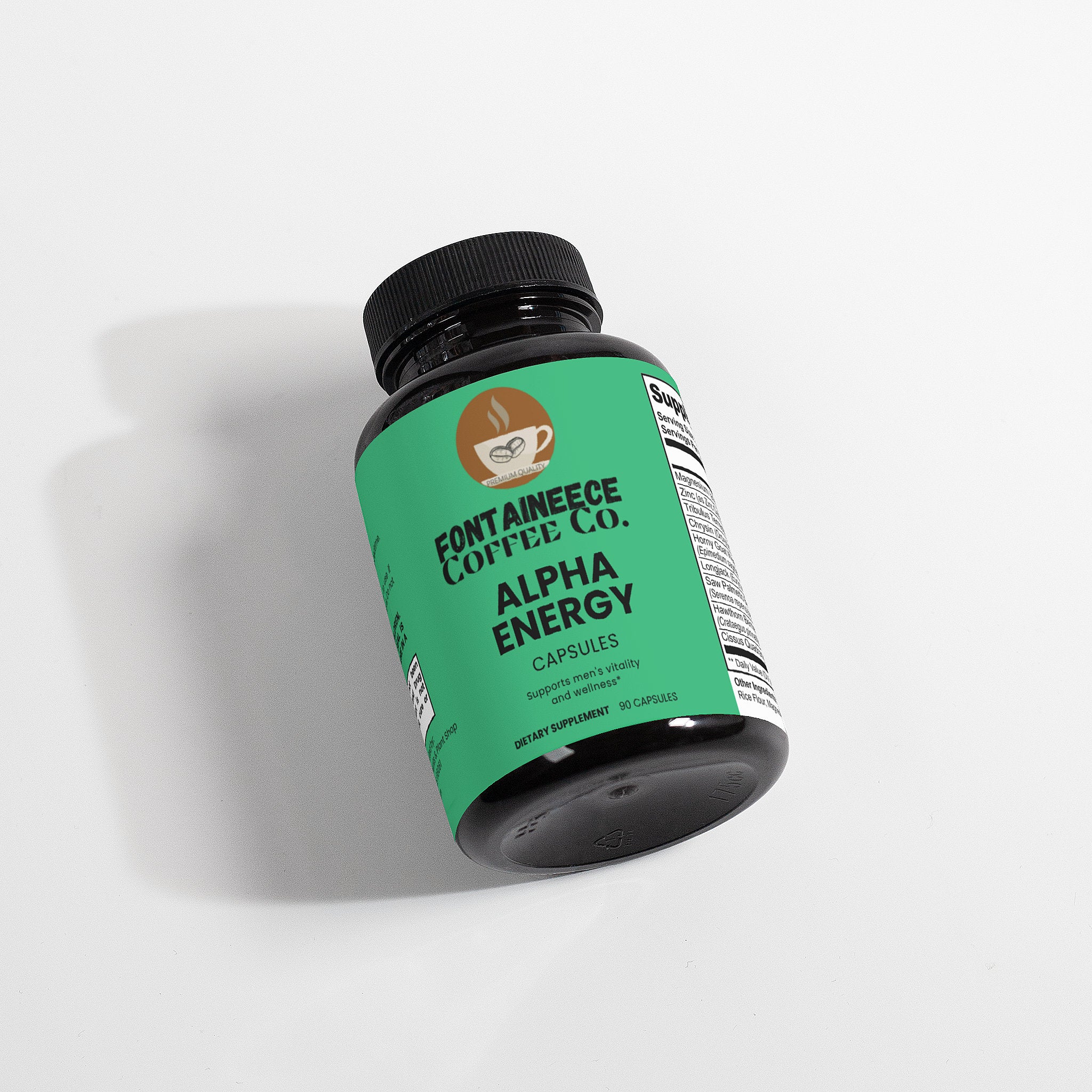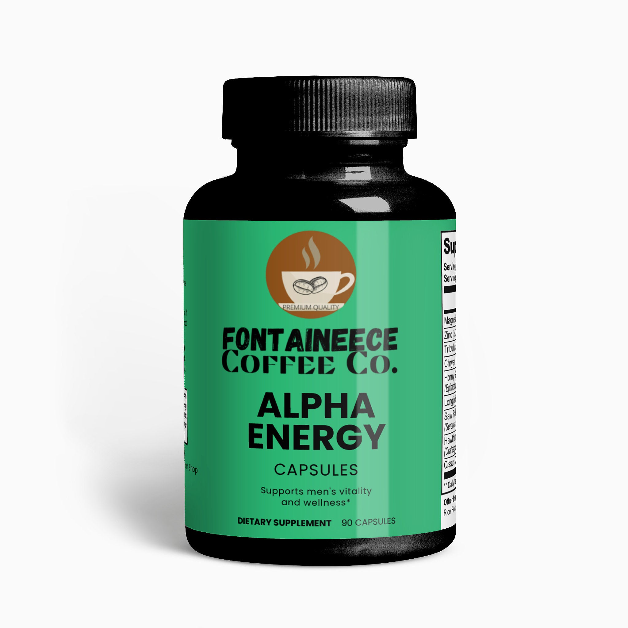 Ingredients: Magnesium (as Magnesium Oxide), Zinc (as Zinc Oxide), Tribulus Terrestris (fruit), Christin (seed), Horny Goat Weed (aerial), Longjack (root), Saw palmetto Berries, Hawthorn Berries, Cissus Quadrangularis (stem), Cellulose (vegetable capsule), Rice Flour, Magnesium Stearate.